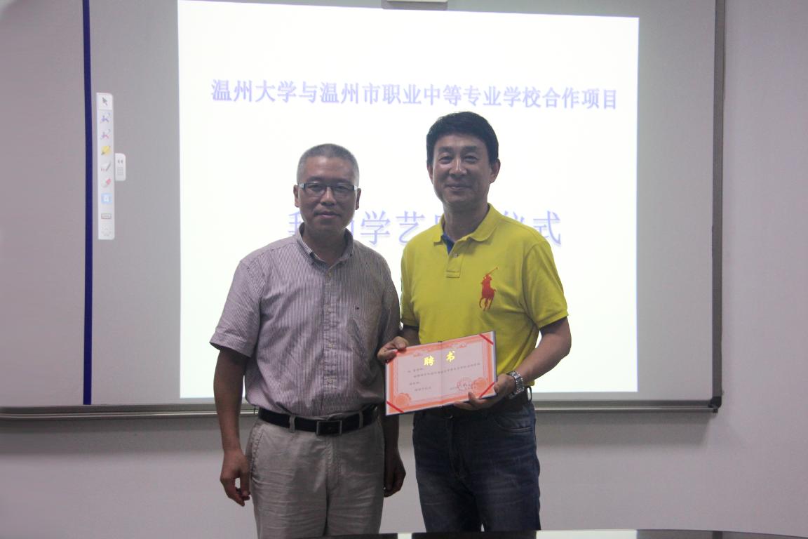 彭小明副院长简单介绍了该项目的由来、内容、意义、完成时间,对各位参与项目研究的老师表示感谢。孙芙蓉院长简单介绍了学院及十三五规划发展的情况,阐述了学前教育专业发展的趋势,并特别提出了学前专业认证的基本要求,明确学前教育发展的方向。温州市职业中等专业学校校长黄威也对这次拜师学艺提出三个建议:(一)希望温大导师对结对学员耐心指导,促进专业发展;(二)希望温大教师日本最新av 引领温职专学前教育专业发展,提高学科层次;(三)希望温大帮扶温职专幼师部教学教育管理,加强双方互动、促进管理水平不断提高。在会上,项目总负责人彭小明与温职专校长黄威签订双方办学合作协议书,校长黄威分别给幼师学部管理层结对与骨干教师结对的导师颁发了为期二年的聘书,并进行集体合影。