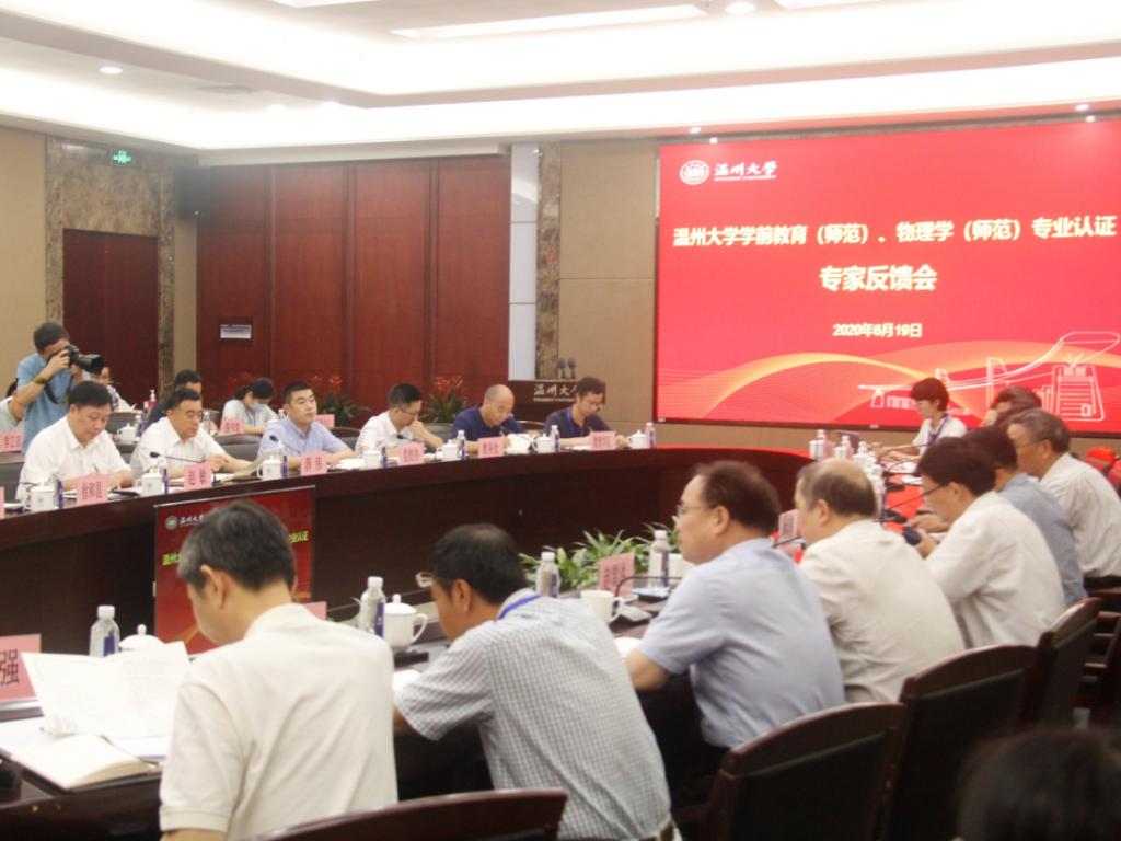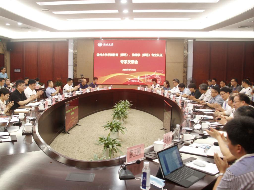 6月19日下午,学前教育专业和物理学专业的专业认证专家反馈会在温州大学岩松堂白鹿厅举行。温州大学校长赵敏、副校长薛伟、徐和昆,校各有关职能部门的负责人,日本最新av 、数理学院的领导,学前教育专业、物理学专业负责人和专业教师代表参加了此次见面会。浙江省教育厅教师工作处副处长林涛也莅临现场。