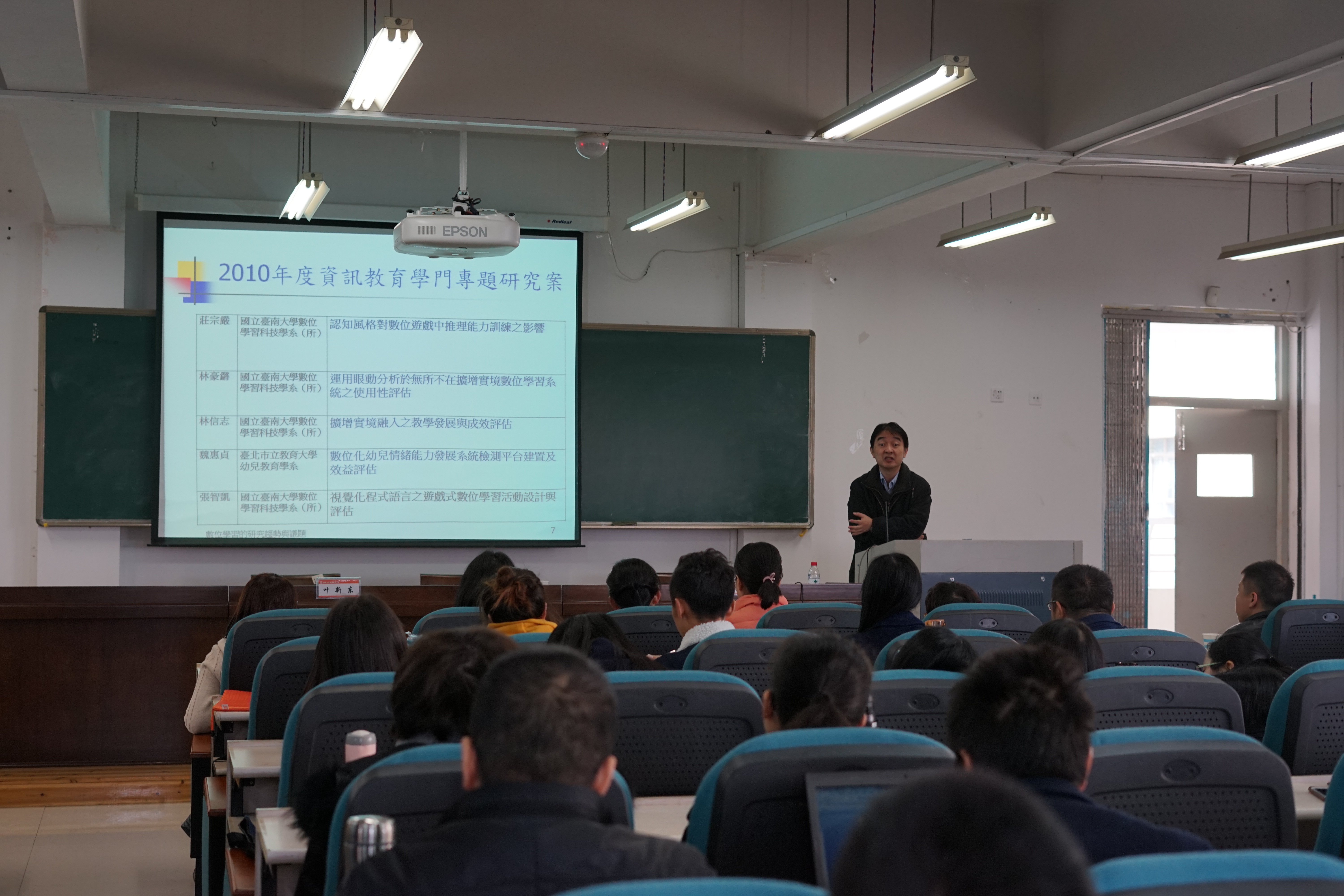 学校各院的老师和同学们慕名而来,未到开讲时间,会议室已经座无虚席。孙芙蓉院长代表学院致欢迎辞后,讲座正式开始。本次讲座黄教授以数位学习的英文教研论文撰写为例,用幽默有趣的语言,深入浅出地讲授了论文写作前的准备工作、论文写作中框架各部分的具体内容构思以及论文完成后的投稿工作。具体内容包括“如何做到数位学习研究的学术创新”、“开始写作前的准备功夫”、“最容易写不好的论文部分:研究背景与动机、文献回顾”、“讨论与结论”与“期刊论文投稿与修改经验”。黄教授以务实的讲授风格向师生们说明论文撰写需要具体应该做些什么,而且从方法论的角度说明了具体应该怎样做。这种务实求真的学术态度、严谨考究的学术思维以及专业规范的学术表达等赢得了师生们的阵阵掌声。意犹未尽时本次讲座已经接近尾声,主持人叶新东院长再次表达了对黄教授学术态度等的尊敬并感谢黄教授为师生们带来了一场务实精彩的学术论文指导讲座。