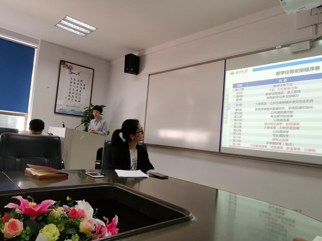 陈志鸟同志专题介绍了温州大学教务教学管理制度与流程,对学校教务处的机构设置和分工以及教务教学管理制度与流程两部分内容做了详细讲解,内容包括教学任务安排、学生选课流程、考试管理、实习实践、毕业论文、学科竞赛、教学改革、课程建设以及教师发展等等。