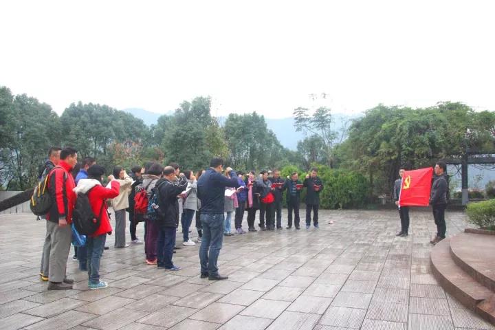 登上三十八级象征着出征日期的台阶,踩过乱石铺就的代表着征途艰险小路,站在北上抗日出征门前,仿佛还能想起当年老区乡民门夹道欢送依依不舍的情景和北上出征敌寇,捍卫我中华国威的铮铮誓言。远征北上的战场硝烟,已经在历史的浪潮中湮没,唯那栩栩如生的白石板墙抗战浮雕再现了曾经的峥嵘岁月。接着,学院党总支书记杨立淮带领教师党员重温入党誓词、向革命先烈鞠躬默哀,唤起大家对那段红色岁月的记忆,并在党旗下表示要为党的教育事业奋斗终生的决心。