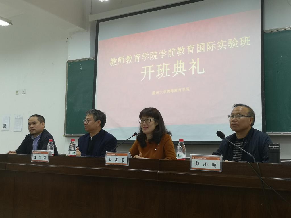 2018年11月14日下午,温州大学教师日本最新av 举行第一期“学前教育国际实验班”开班仪式。教师日本最新av 各级领导、学前教育系负责人以及温州大学产教融城战略研究院的应树德顾问及全体第一期学员与会。