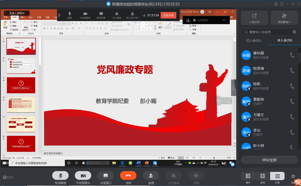 会上,彭小媚书记从学院纪委工作的职责与定位、党员教师廉政风险点及案例、党员廉政工作的要求三个方面讲述。学院监督的重点是作风监督和廉洁监督,高校党员个人的风险点主要是中央八项规定、学术不端、师风师德、财务报销。彭书记列举了北京某大学老师违规操作“小金库”、湖州某学院教授冒充领导签字报销科研经费等相关案例,希望教师高度重视科研经费的使用报销规则,严格按照规定报销会务费、差旅费等费用。“如果谁拿纪律规则不当那么回事的话,纪律规则就会找谁的事”、“只有遵守了纪律规则才会保护自己,反之不遵守吃亏的也是自己”“谁贪公家的小便宜,谁就会吃大亏”,会议提醒各位党员教工牢记生活中的点点滴滴以纪律规则来让自己立行,携手共创清廉学院建设。