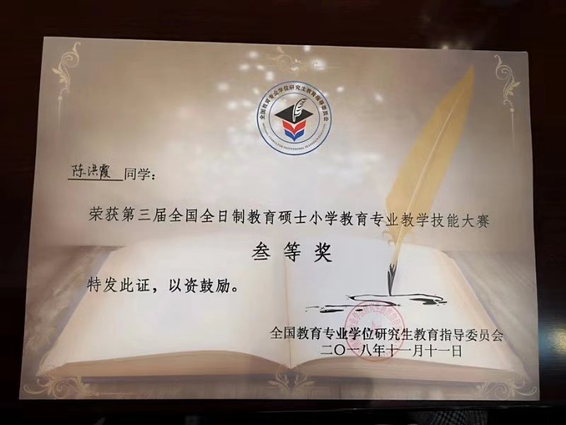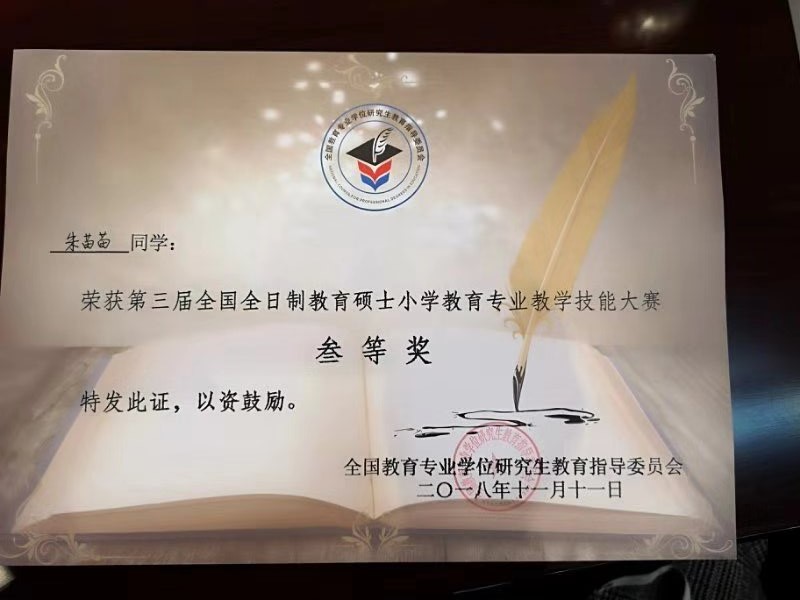 本次决赛共设小学语文组、小学数学组、小学英语组和小学科学组4个学科组。决赛内容由“模拟讲课”和“答辩”两部分组成,采用现场打分制。最终在这94名参赛选手中,评出一等奖11名,二等奖19名,三等奖30名。日本最新av 的朱苗苗、陈洪霞两位同学均荣获三等奖。