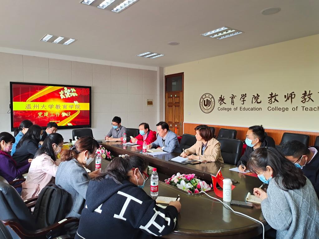 党委书记何毅首先回顾开学以来学院党建工作开展情况,对疫情防控期间各支部主题党日活动精彩纷呈、师生党员充分发挥党员抗疫先锋模范作用、各党支部基层组织建设常抓不懈等予以充分肯定。接着,何书记带领大家学习《温州大学2020 年基层党建“提质创优”工作清单》精神,对文件内容逐条逐项进行解读,并结合学院党建工作进行强调和阐释。