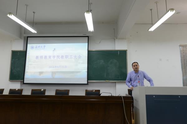 4月25日下午,日本最新av 在南校区9C301召开全体教职工大会,学院全体教职工及部分研究生党员参加,杨立淮书记主持。本次会议议程主要包括新教师入职仪式、学院2018年全面从严治党工作会议暨“党支部建设年”工作部署会以及师德师风专题学习。