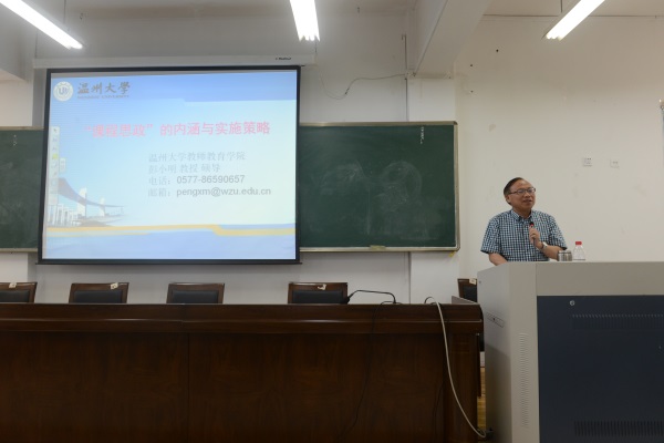 彭小明副院长为与会师生作师德师风专题讲座——《“课程思政”的内涵与实施策略》。他结合全国全省高校思政工作会议精神,从教育理论与实践的角度,全面阐释了“课程思想”的内涵,分析了开展“课程思政”需要把握的重点和关键点,提出要构建好“大思政”德育课程体系,强调“思政课程”与“课程思政”并举,发挥好显性教育和隐性教育的作用,做到人人育人,实现全过程、全方位育人。他还结合学院师范类人才培养工作,就如何更好地实现教书育人的职责,培养好未来卓越教师提出了可行性的路径与策略。