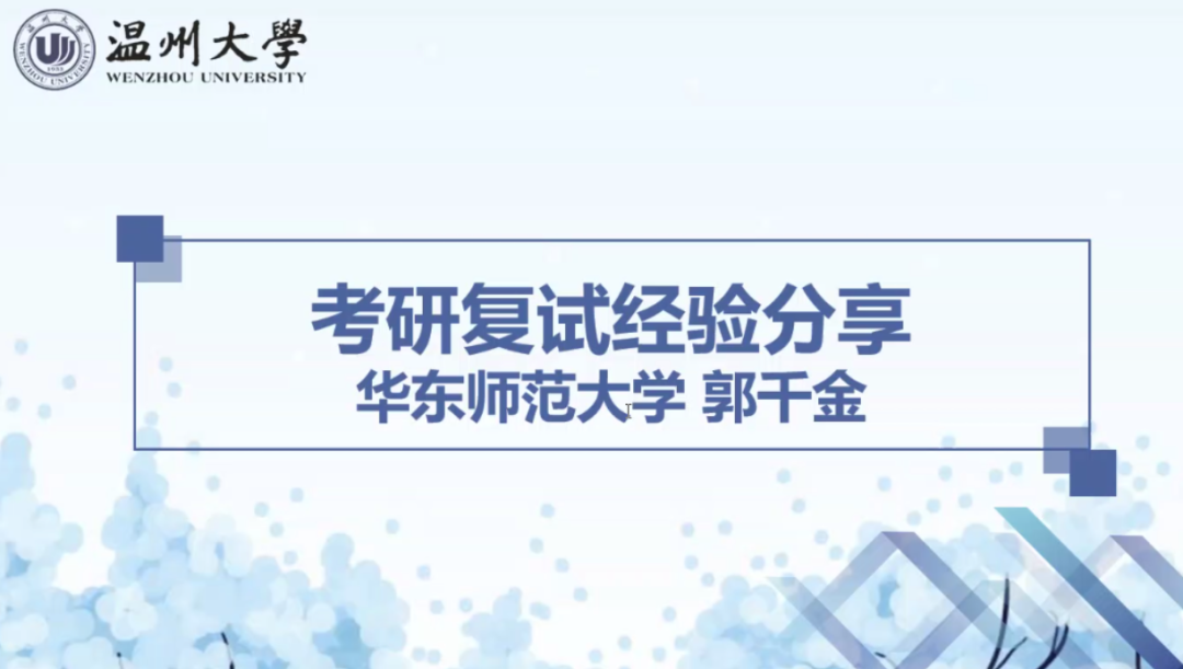 为坚定学生考研决心,提升学生考研竞争力,教院于4月2日晚在腾讯会议举办“考研讲堂”。参加本次考研讲堂的有学院学工办辅导员潘士杰老师,并特别邀请了日本最新av 学前教育专业毕业生、现华东师大研究生郭千金,学院小学教育毕业生、现浙师大研究生洪璟做经验分享交流,到场的还有学前教育与小学教育专业的学生。本次分享会由潘士杰老师主持。