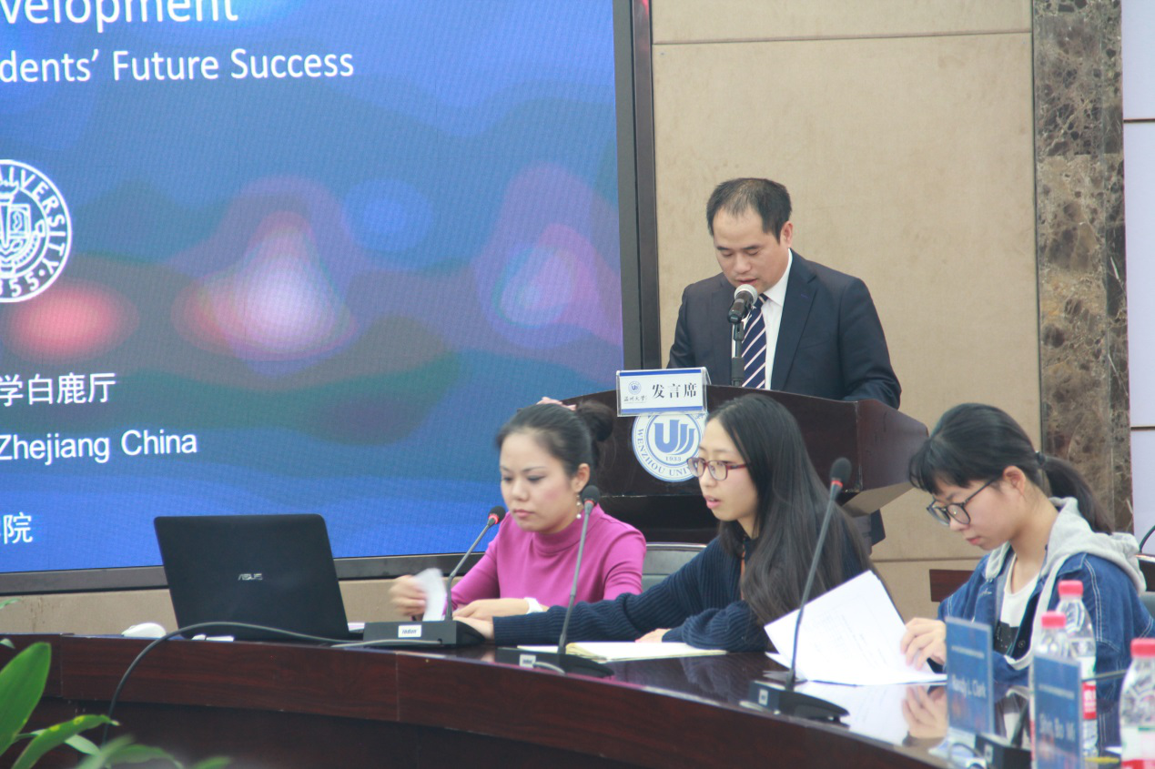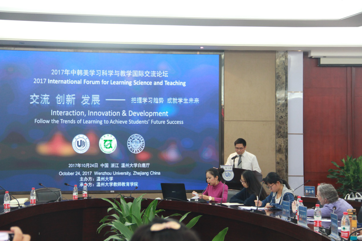 10月24日,由温州大学主办、教师日本最新av (教育技术系)承办的“2017年中韩美学习科学与技术国际交流论坛”会议在温州大学白鹿厅顺利举办。教师日本最新av 书记杨立淮代表学院和教育技术系教授胡来林代表专业分别做开幕式致辞。