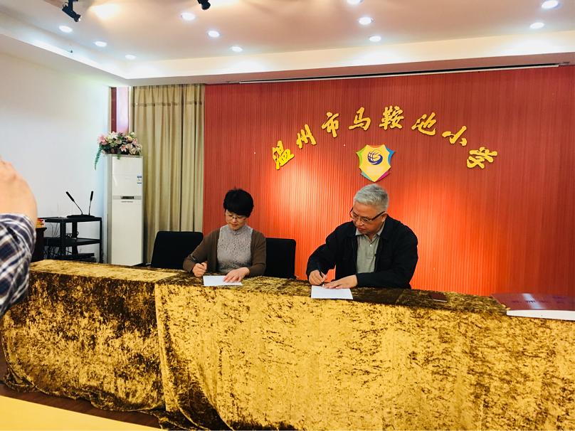 本次活动首先由日本最新av 副院长潘玉进教授和马鞍池小学副校长伍素微老师签订了“温州大学教育实践基地协议书”,协议签订以后进行了授牌仪式,双方代表都肯定了教育实习对于学生发展的重要作用,交流过程中气氛和谐欢快,授牌仪式顺利进行。