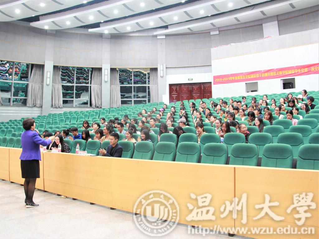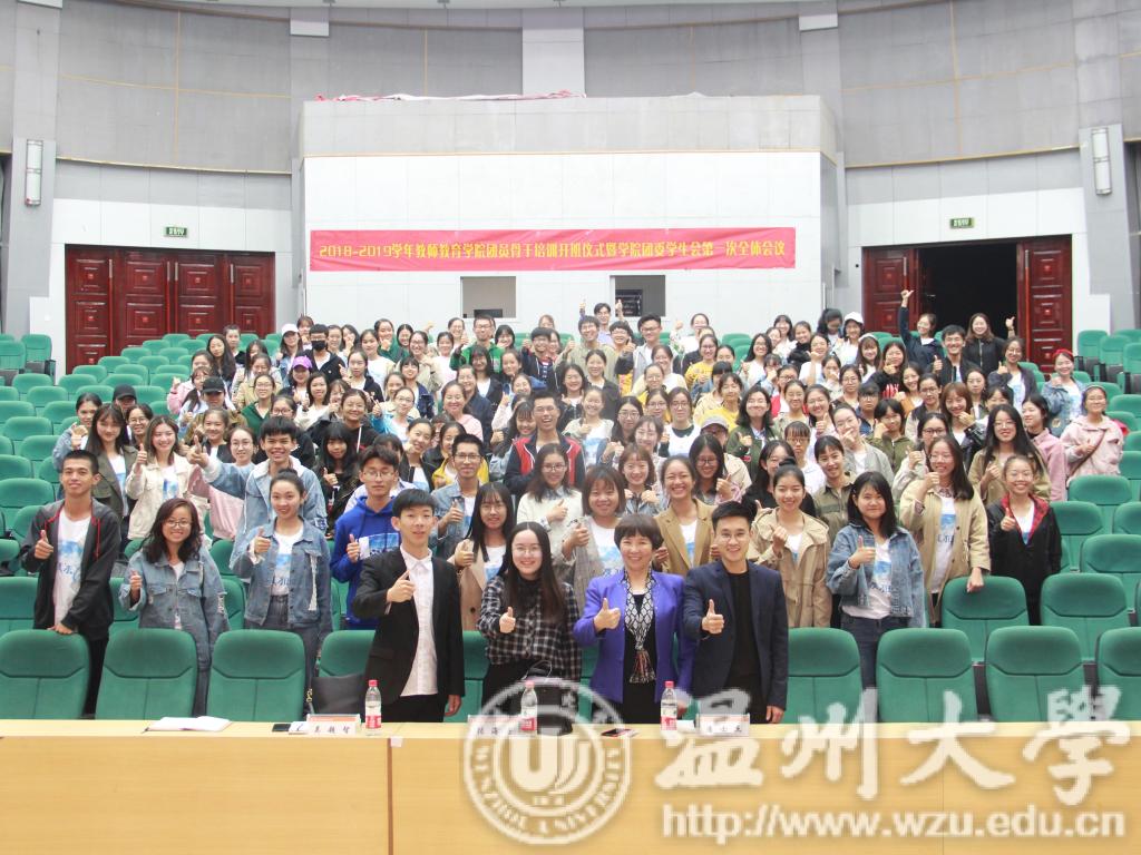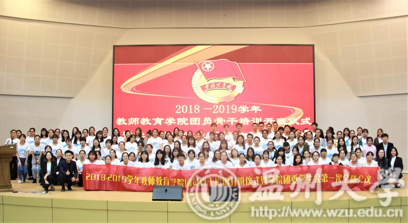 为促进团学凝聚力的提升,增强团学成员的团员意识,2018年10月19日晚六点半,温州大学教师日本最新av 团员骨干培训开班仪式暨学院团委学生会第一次会议于九号楼报告厅正式举行。出席本次会议的有温州大学首席心理师张海音副教授、学生科辅导员吴超智老师、潘士杰老师及学生会全体成员。