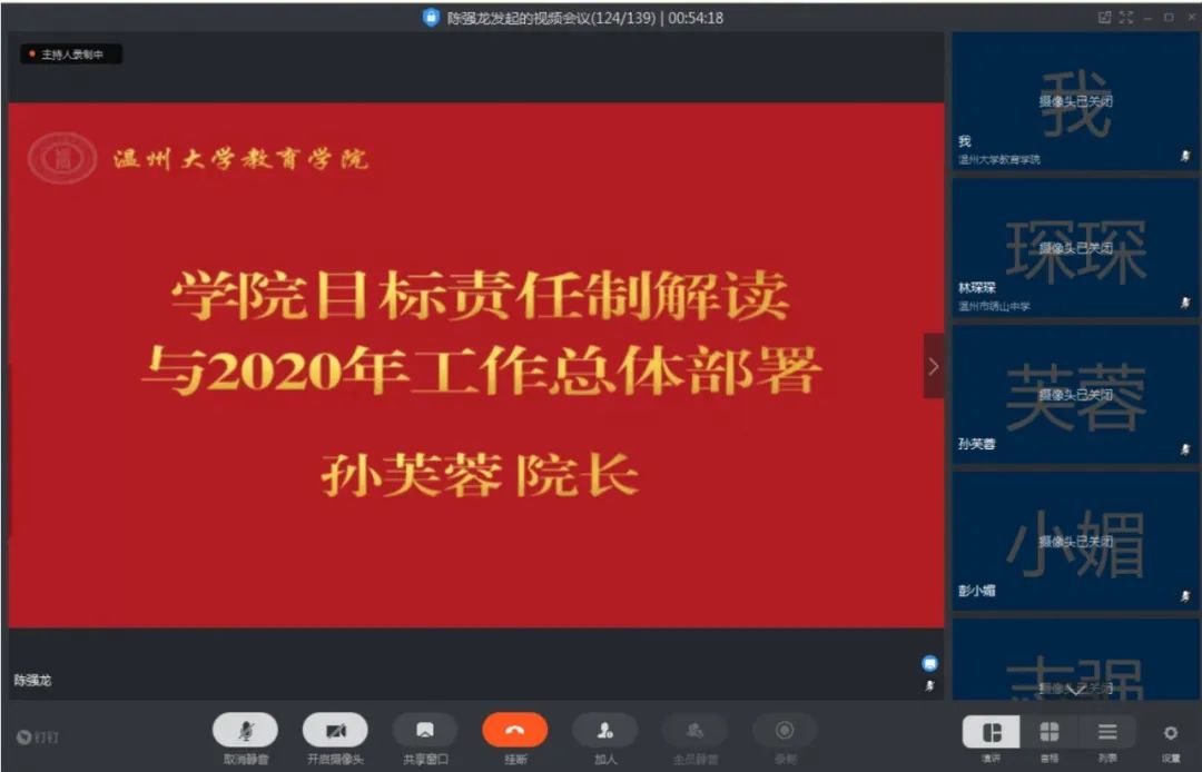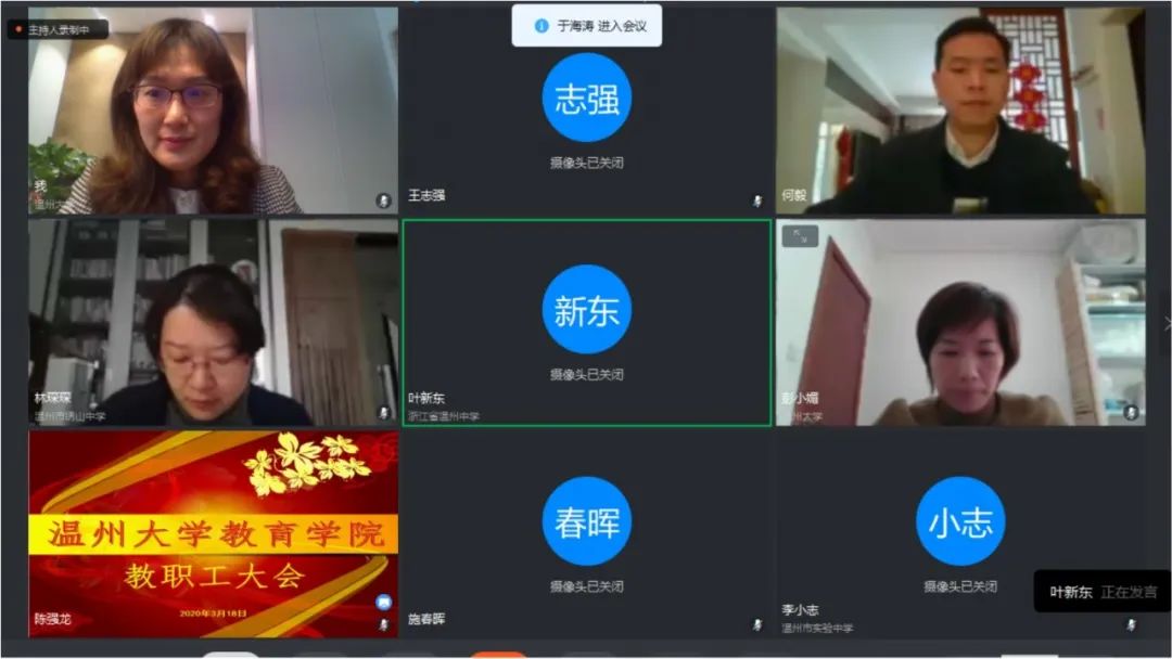 首先,叶新东、王志强、林琛琛、彭小媚等学院领导结合分管工作作通报部署。叶新东副院长就近期网络教学情况做了通报,并对学院教学常规、教学重点做了强调。林琛琛副院长就一个多月线上教学的工作亮点和学前专科后二工作的推进情况做了通报。根据调研数据,学院线上教学基本做到了线上线下实质等效,学院推出了精准培训、精彩课例、精妙学坊三大主推手助力线上教学,学院线上教学得到学生和学校教学督导的高度认可。此外,她根据学院制定的教育实践实施方案作了具体部署。王志强副院长传达学校研究生教育工作会议精神,并通报近期学院研究生教育工作和国家课题申报情况。彭小媚副书记就近期学院学生思政工作作通报部署。她强调要继续深抓两大紧急要事,努力培育三大学科竞赛,持续推进四大特色工作;学院继续做好全院学生的每日一报和“三返”学生的劝返工作;持续推动学风建设、班级管理、招生就业、心理健康、党团建、学科竞赛、宣传等各方面工作有序运转;宣传工作突出,学院 “云班会”成为学校典范。