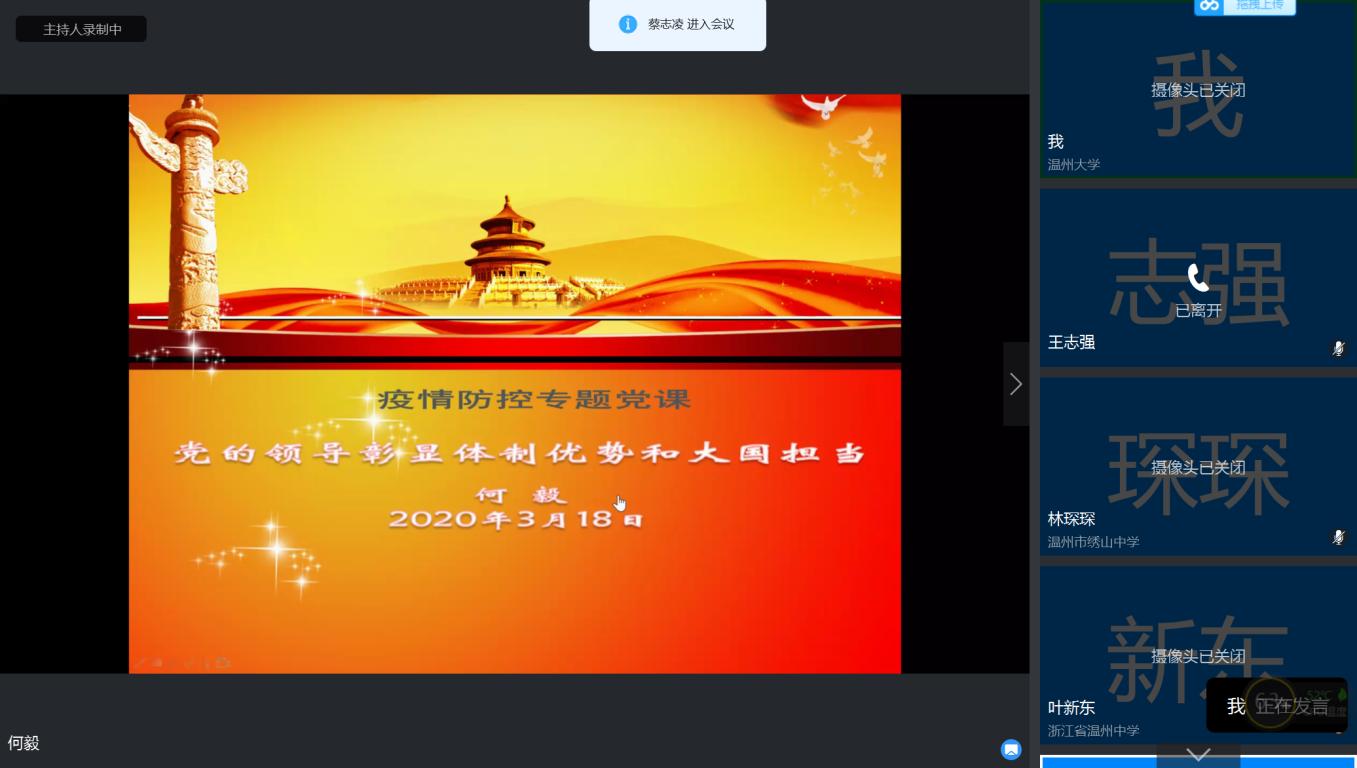 同时,何书记结合日本最新av 师生共同参与战“疫”的先进事迹为大家点赞:教职工赖文华老师身在韩国,心系祖国,以个人名义向温州医院捐赠口罩;学院优秀学子积极报名,为战“疫”子女提供学业辅导;学院还开展了“以笔写'疫',思想同行”主题活动,引发强烈反响;学院老师还积极运用专业知识积极抗击疫情,开设实用课程回馈社会。何书记指出,目前正处于抗疫决战阶段,此次疫情既是挑战也是机遇,相信在党的坚强领导下,全国人民团结奋战,一定会全面战胜疫情,早日迎来春暖花开。