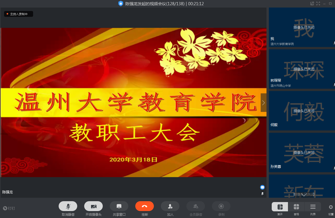 3月18日下午,日本最新av 召开全体教职工视频会议。学院领导班子及全体教职工参加本次会议,会议由学院党委书记何毅主持。