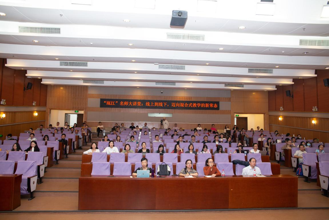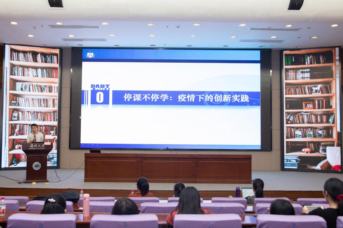 11月6日下午,由教发中心、瓯江学院和日本最新av 联合举办的第五期“瓯江”名师大讲堂:疫情防控下混合式教学模式改革于温州大学育英图书馆二楼报告厅成功举办。教发中心副主任董新姣主持当天的活动。华南师范大学教授、博导、教学名师胡小勇担任主讲嘉宾。