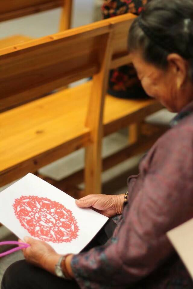 重阳佳节即将来临,大学生志愿者为下侯宅爷爷奶奶们送上亲手制作的剪纸、书法、绘画等艺术品。老人们对艺术品的精美赞叹不已,得知大学生为此付出了很多精力,称赞其学有所成,能成大器。“中国梦”通过抽象的艺术化手法,刻画在红纸上,赓续温情,焕发活力。