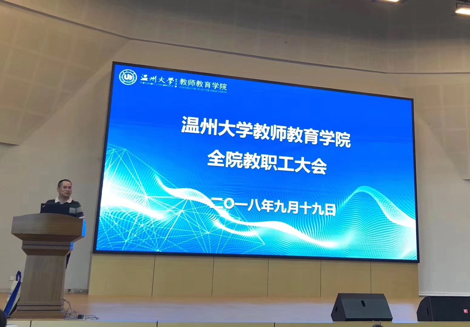 潘玉进副院长、彭小明副院长、杨丽君副书记、叶新东副院长等学院领导就其分管工作做暑期总结,并部署新学期任务安排。他们分别总结暑期教育硕士专项评估、教育硕士联合培养基地建设、师范专业认证、暑期社会实践、百名教授进百家、就业、环境改造、国家虚拟仿真实验教学项目建设、学科建设等方面的工作成效,指出新学期重点工作是要进一步做好学院党建、教育硕士评估和总结整改、教学质量工程提升、师范专业认证、科研建设、学科竞赛、教风学风等工作。