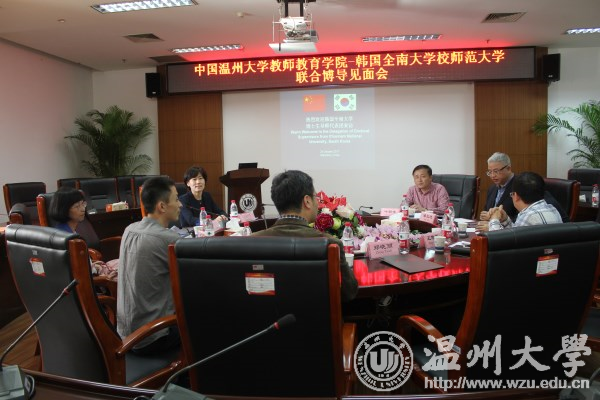 和韩国全南大学师范学院一直以来保持着友好关系,在科研合作、教师交流和学生交流中都有非常好的互动经验,这次联合培养博士的合作正式启动,会成为两院交流新的里程碑。双方博导简要介绍了各自研究方向,并就学科领域的合作可能性展开了积极探讨。