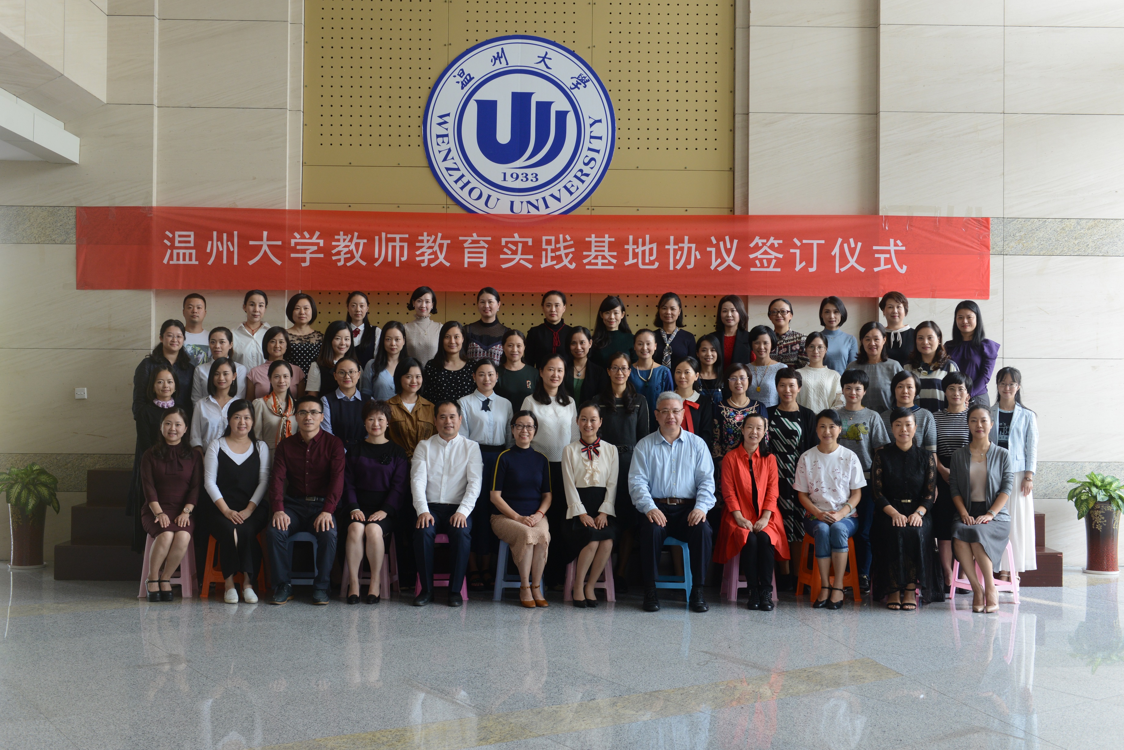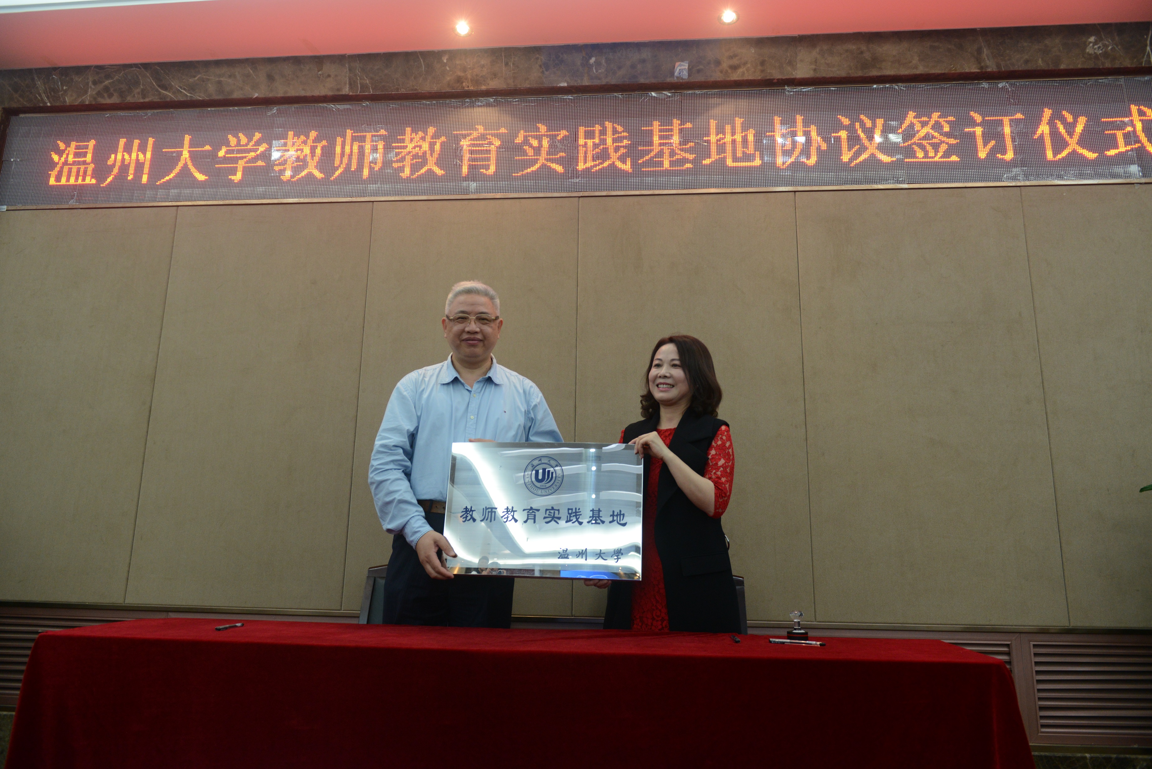 温州大学代表潘玉进副院长和幼儿园代表温州市机关一幼陈静怡园长签订《温州大学教师教育实践基地协议书》。本着“相互尊重、互利互惠、资源共享和共同发展”的原则,温州大学承诺为幼儿园输送“基础厚、实践强、能创业、视野广”的学前教育特色人才,幼儿园提供实践教育场所、教育实践活动指导和教育实践问题解决等方面的支持。
