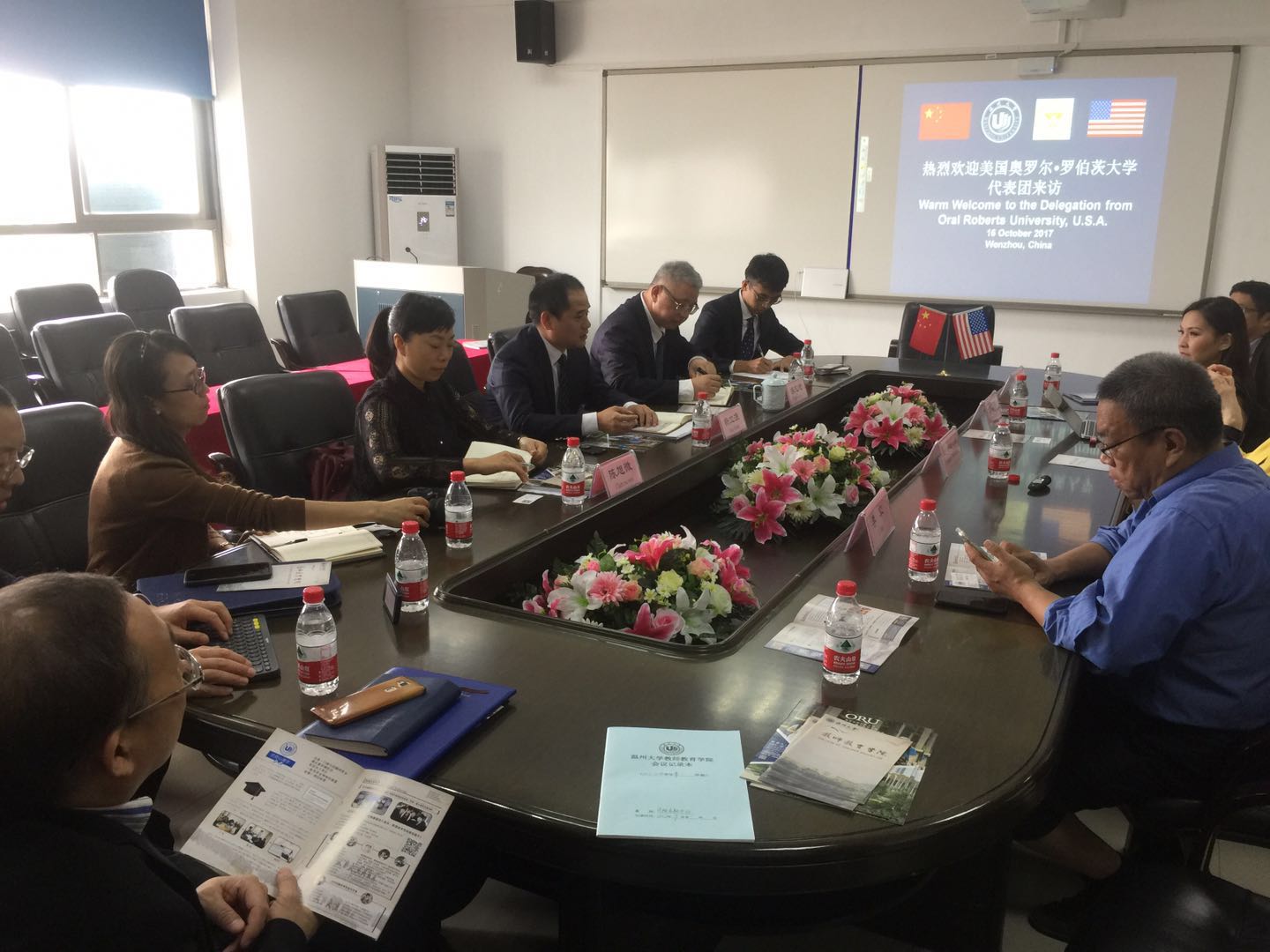 2017年10月16日,美国奥罗尔·罗伯茨大学(ORU)代表团,在瑞德-马蒂娜丝·凯思琳女士(ORU首席副校长兼总教务长)带领下,来到日本最新av 进行深入洽谈。校外事处处长严晓鹏、副处长熊勇,学院党总支书记杨立淮、副院长潘玉进,学前教育系书记陈旭微、副主任杨婧以及相关人员参与了此次洽谈会。