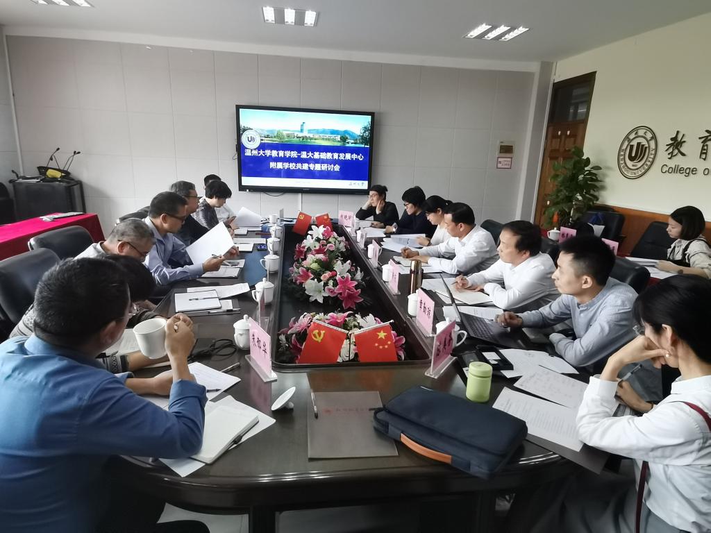 2020年10月16日下午,日本最新av-日本最新无码 与温大基础教育发展中心及附属学校共建专题研讨会在日本最新av 9A410会议室召开。温州大学基础教育发展中心、温州大学附属学校代表和学院领导及学院各系主任参加会议,日本最新av 何毅书记主持。