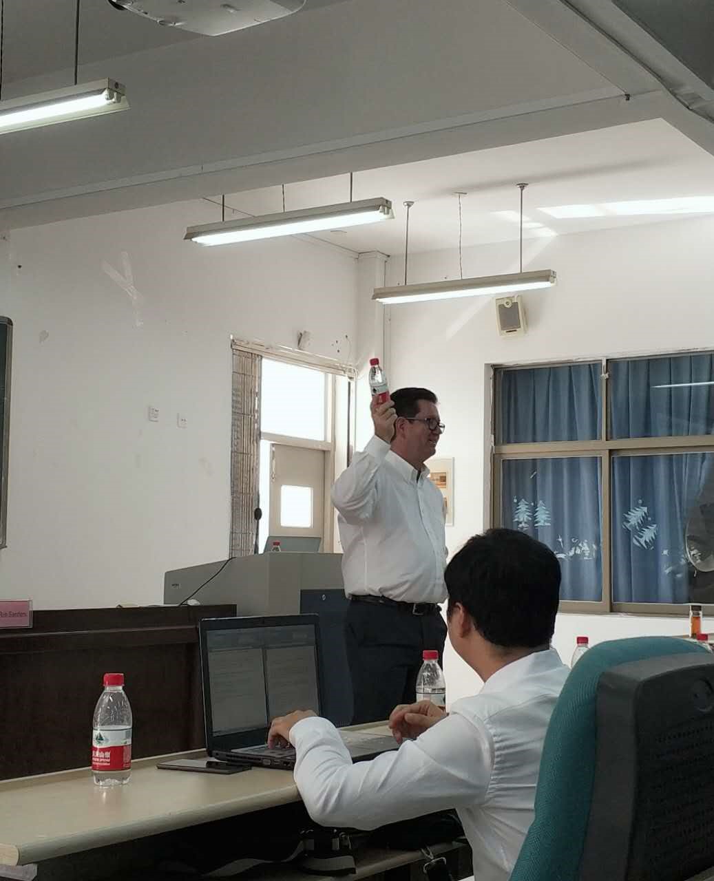 首先,颜文靖老师对Rob Sanders博士进行了详细的介绍,说明了Rob Sanders博士研究的主要方向和此次讲座的主要内容。接着,Rob Sanders以一个简短的视频向大家介绍了美丽的阿帕拉契州立大学,他也向大家介绍了阿帕拉契州立大学主要的教学专业。Rob Sanders博士提出社会建构主义理论所倡导的五大重要内容,由此引出互动学习的重要性。他向大家展示了如何通过线上学习进行课堂的互动和交流。Rob Sanders博士还向大家讲述了同步学习和异步学习的优缺点并由此引出通过AET软件进行的线上学习,阐述了这种虚拟学习环境的先进之处。最后,Rob Sanders博士向大家介绍了这种虚拟学习环境下的学习周期计划,主要包括:探索、计划、行动、反思四个步骤,并且向大家介绍了每个步骤需要具体做的内容。在讲座结束后的提问环节,Rob Sanders博士就我们各位老师和同学的问题也进行了详细的解答,并与一些教师就在线学习进行了深入的交流。