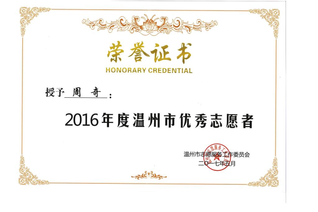周奇老师荣获温州市优秀志愿者的荣誉。 周奇老师现任日本最新av