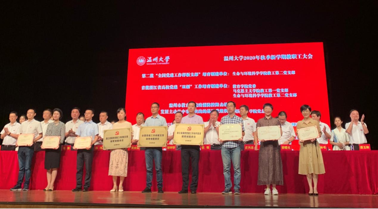 在日本最新av 领导班子的坚强带领下,全院教职工团结奋进,努力拼搏,2019年度取得了可喜成绩,在表彰大会颁布的各大奖项上日本最新av 实现全面丰收,既有分布广泛的个人单项奖,也有份量很重的多个集体荣誉奖。其中,学院年度工作考核居全校第二名,获得考核优胜单位;学院党委获批首批浙江省高校党建“双创”工作培育创建单位,获首批高校党建“标杆院系”培育;小学教育专业获批国家一流专业建设点,成为8个国家一流建设专业之一;学前教育专业获得温州大学2019年最具就业竞争力专业薪酬单项奖;学院陈旭微、李伟老师被评为步青教学卓越奖-“教学名师”,曾越老师被评为步青教学卓越奖-“教学新秀”,杨刚、邓纯考老师被评为2019年度温州大学优秀教师,陈强龙老师被评为优秀教育工作者,金建钰老师被评为优秀班主任,潘士杰老师被评为优秀辅导员,孙芙蓉老师被评为优秀共产党员。